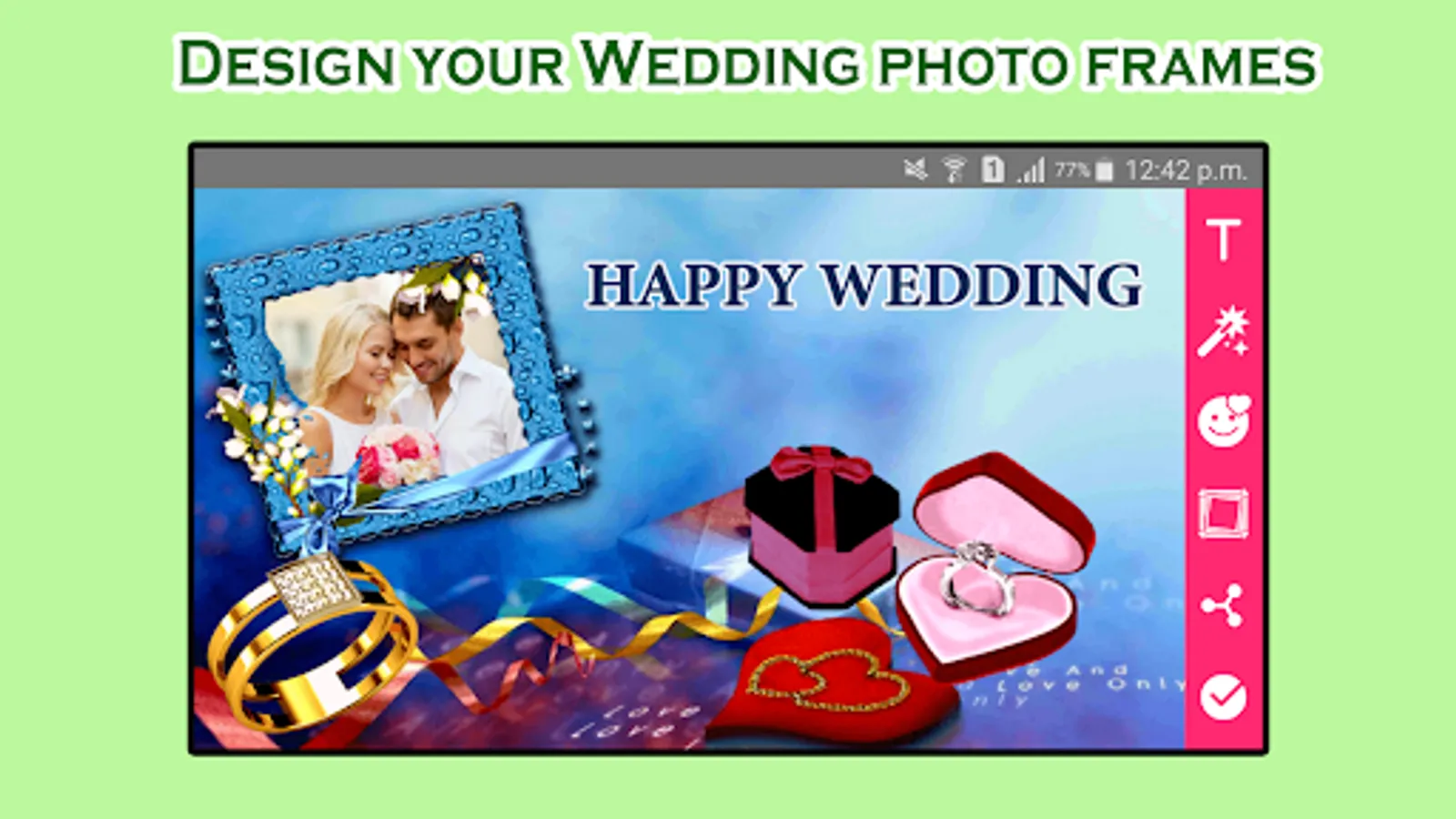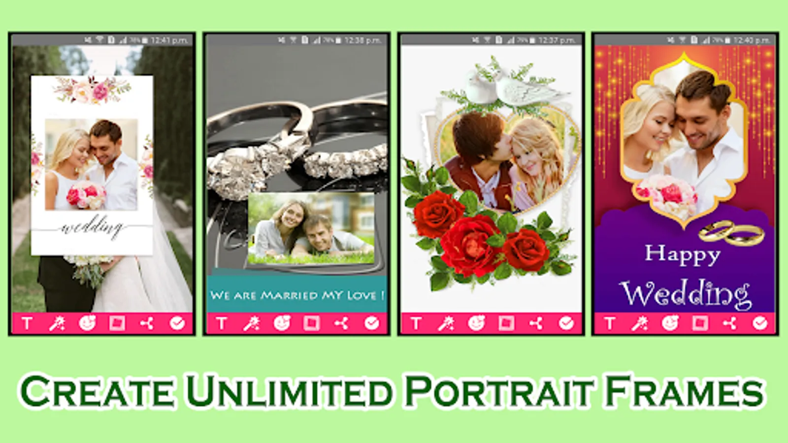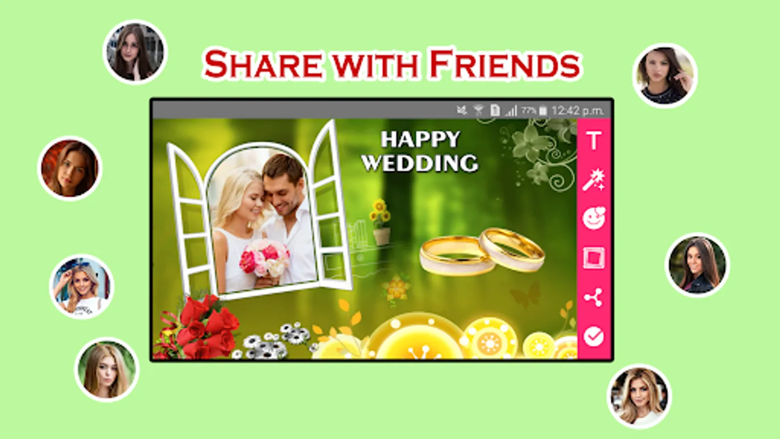 ✔ Save your new edited Wedding Frame images and share it instantly on social networks.