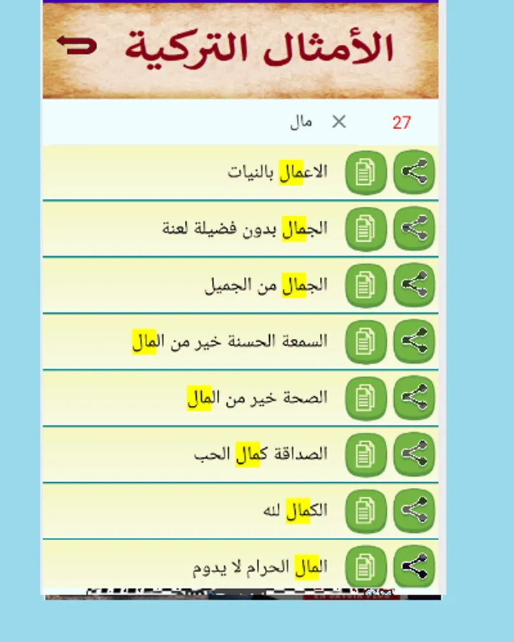 Bu uygulama Arapçaya çevrilmiş yaklaşık 800 atasözü içerir.