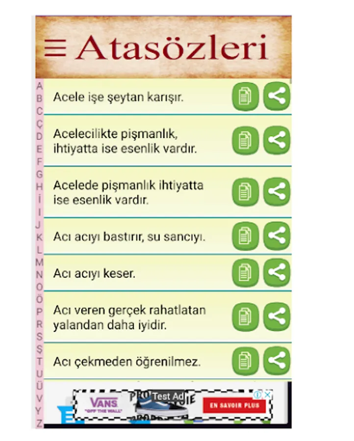 This app contains about 800 Turkish proverbs, helps you to improve your Turkish.