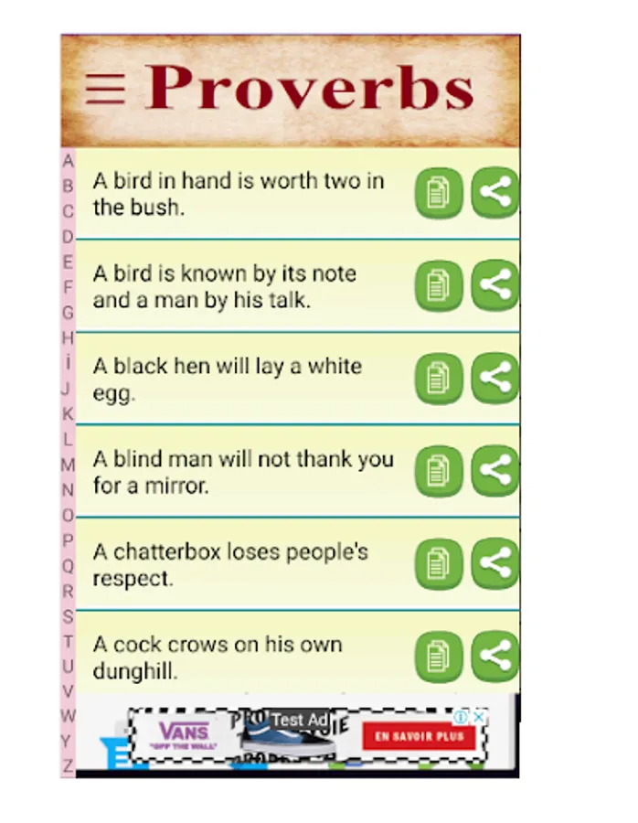 İngilizce öğrenmek istiyorsanız, bu uygulama İngilizceye çevrilmiş yaklaşık 800 atasözü içerir.