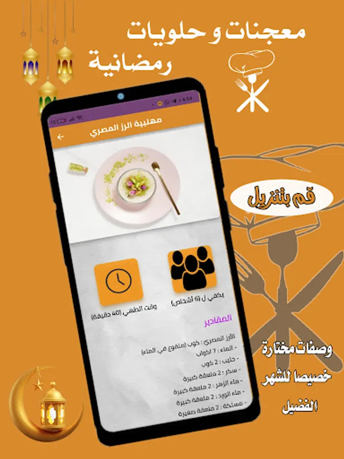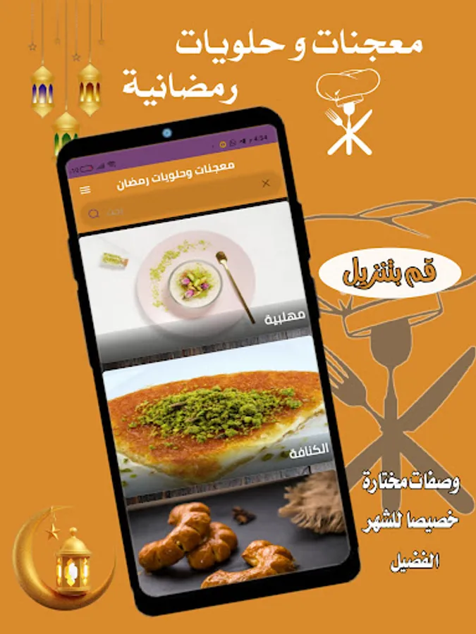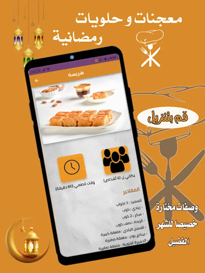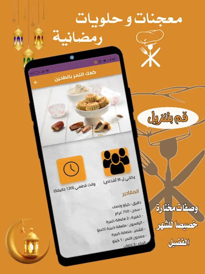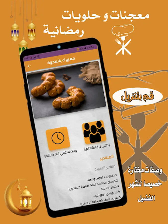 يحتوي تطبيق معجنات و حلويات رمضان على العديد من