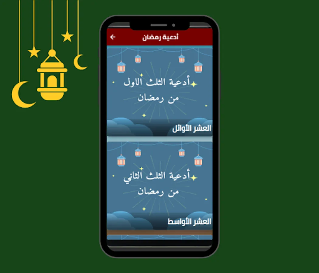 Where the application of supplications for the blessed month of Ramadan was designed with several lists, including the supplication for entering the month of Ramadan, the supplication for the end of Ramadan, and the supplications for Ramadan written and audible