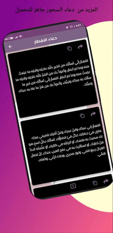 Users can download the application for free and open a daily page showing the supplication that must be read on that day, and it also allows users to download the daily supplications in full with all the necessary voices and exercises, and the application contains translation in the various languages that it supports such as Arabic, English, French and Urdu, which makes it comfortable and responsive to the largest number of users.