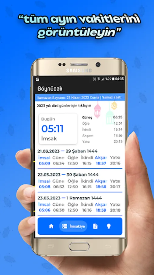 - Notifications come as iftar and sahur time (even if the phone is restarted)