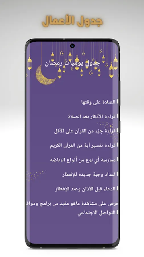 Ramadan Day Organizer application helps you divide your time and benefit from it through the diary schedule section that contains the work to be done during the day.