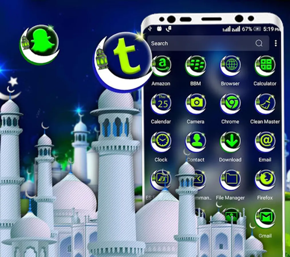 Ramadan Theme for Launcher lets you enhances the look of your phone with Ramadan backgrounds & icons set. If you bored with look of your phone & want to change whole look of your phone? This Launcher Theme would be best for you. It has HD wallpaper background & icon pack of mostly popular apps. If icon pack doesn’t have your favourite app; Don’t worry this launcher theme automatically decorate icons with personalised icon shape & match with Theme.