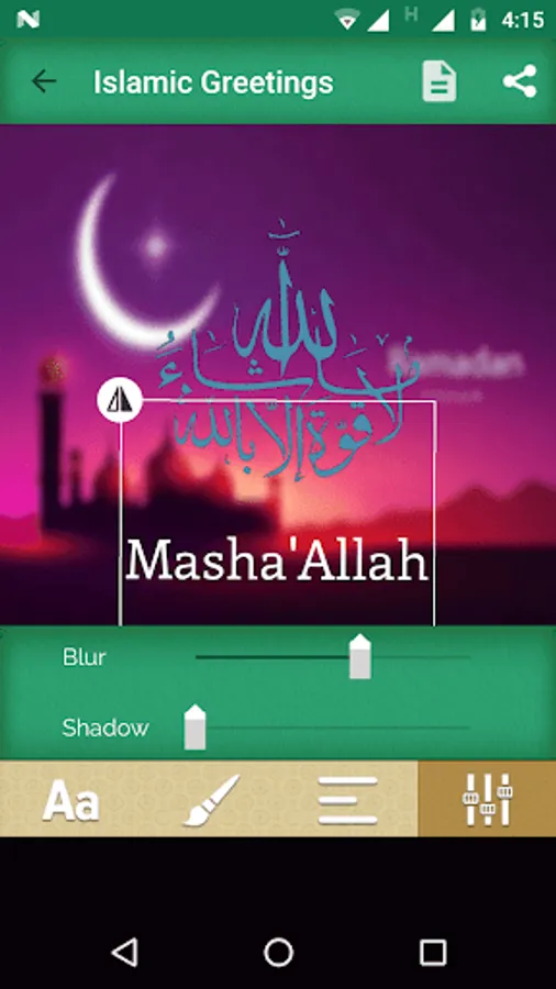 Make your Own Ramadan Greetings, Muslim, Eid and other Ramadan Greetings card with our Greeting app. We have wide range of Islamic Wallpapers, Ramadan, Eid wallpapers to choose from Gallery. You can add Arabic image over Islamic wallpaper and its English translation below it. It will do all wishing purpose for Ramadan 2019.