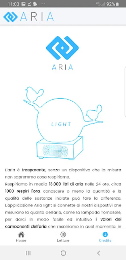 ARIA measures the air quality through the device paired via Bluetooth. Knowing the values of the quality of the air we breathe in the place and at the time we are interested in knowing it is a requirement that is increasingly requested by those who live in large cities where external and internal pollution causes various respiratory pathologies.