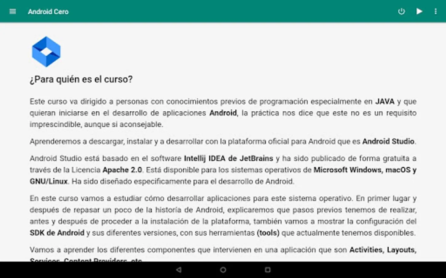 This is the first installment of a series of three, which will be formed by Android from scratch, Intermediate Android and Advanced Android, in the latter also deepening in Kotlin.