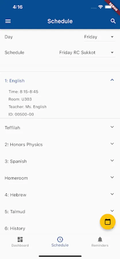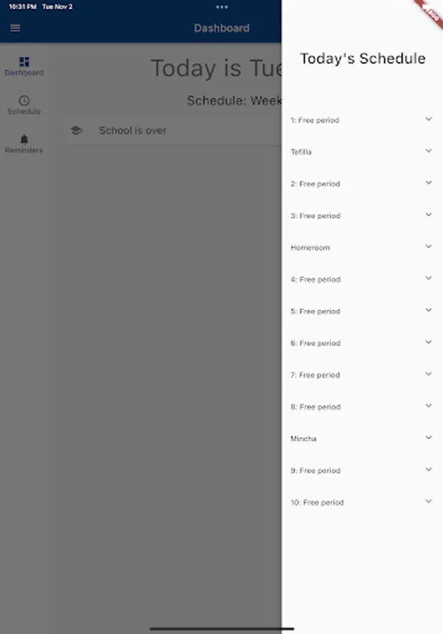 Exclusive to the Ramaz Upper School, RamLife aims to help students and faculty get through the school day seamlessly. For your convenience, your current and next period classes are displayed on your dashboard, along with any reminders, with more of your schedule only a tap away. You can also view the calendar in detail and set reminders for a specific class or period. Open the websites and apps you need most in the menu (we are not affiliated with any of those services, except of course for the link to the Ramaz website). And yes, we have a dark mode!