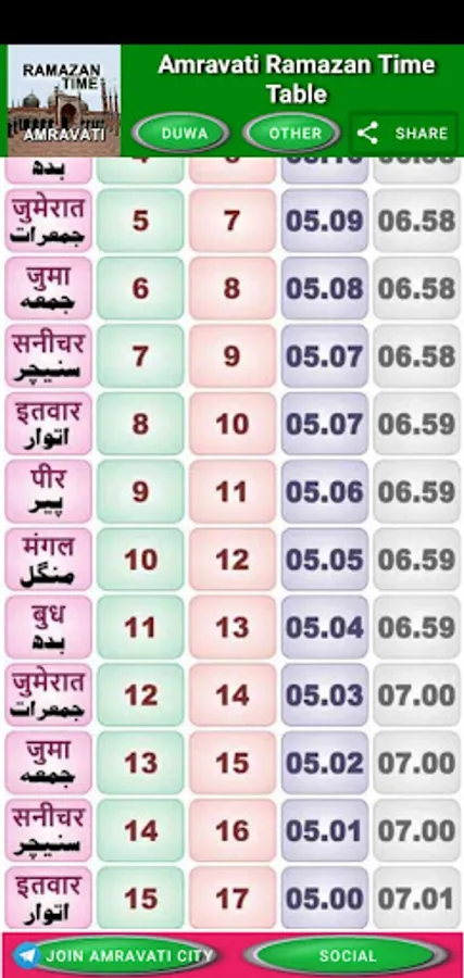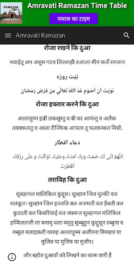 Maharashtra Amravati City Ramadan Time Table with Iftar Duwa And Sahar and more Duwa's. Amravati City Salah Time Table. and more valuable information in this App. Time Table Use this app There is also some web view in this app. To enjoy this a lot, run it on the Internet