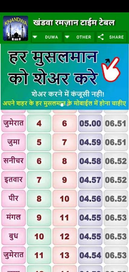 Khandwa City and Taluka Ramadan Time Table like Sahar and Iftar time. Khandwa City and Taluka all Villages Ramazan Time Table, duwa and more information. Ramadan Digital Card Khandwa India Madhya Pradesh