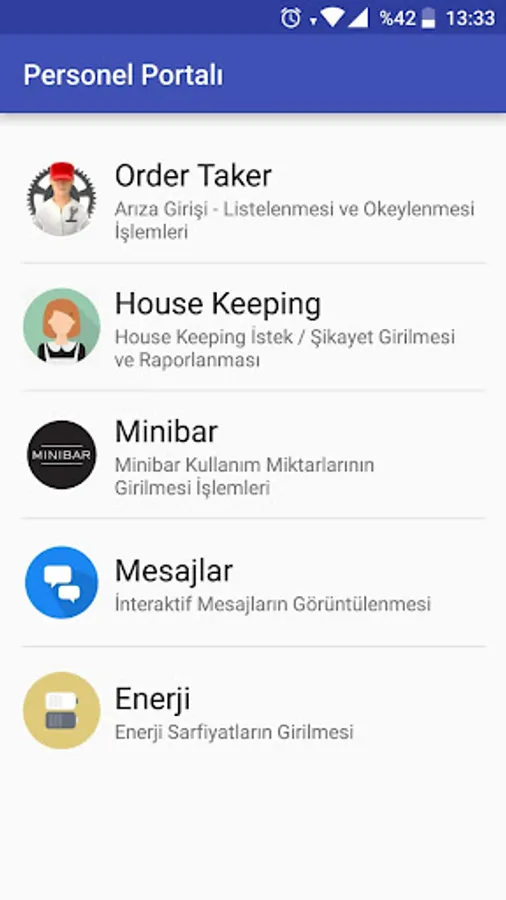 By entering your malfunction, request, complaint, mini bar requests from your mobile phones and tablets, you can completely eliminate phone and radio traffic and perform all related transactions through the mobile native application.