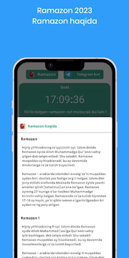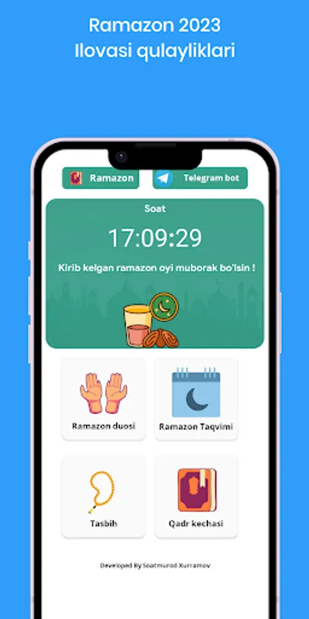 Ilova haqida: Ilova Ramazon oyi uchun ishlab chiqildi ilova qulayliklari: