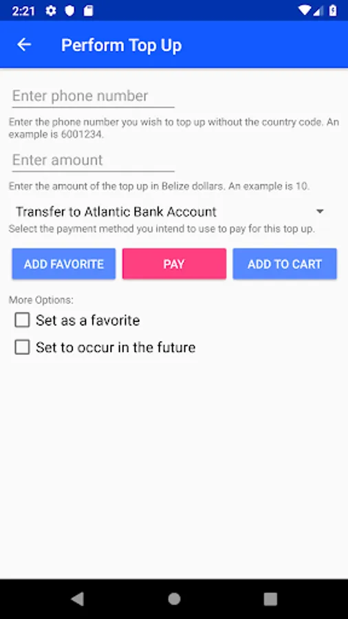 eCredit Belize allows you send phone top ups to any phone number in Belize.