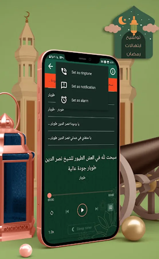 By using the "Ramadan Prayers and Recitations" application, you can listen to your favorite prayers and share them with your friends and family through social networking sites such as Facebook, Twitter and Instagram. In addition, you can download nasheeds to your phone and listen to them at a later time, without the need for an internet connection.