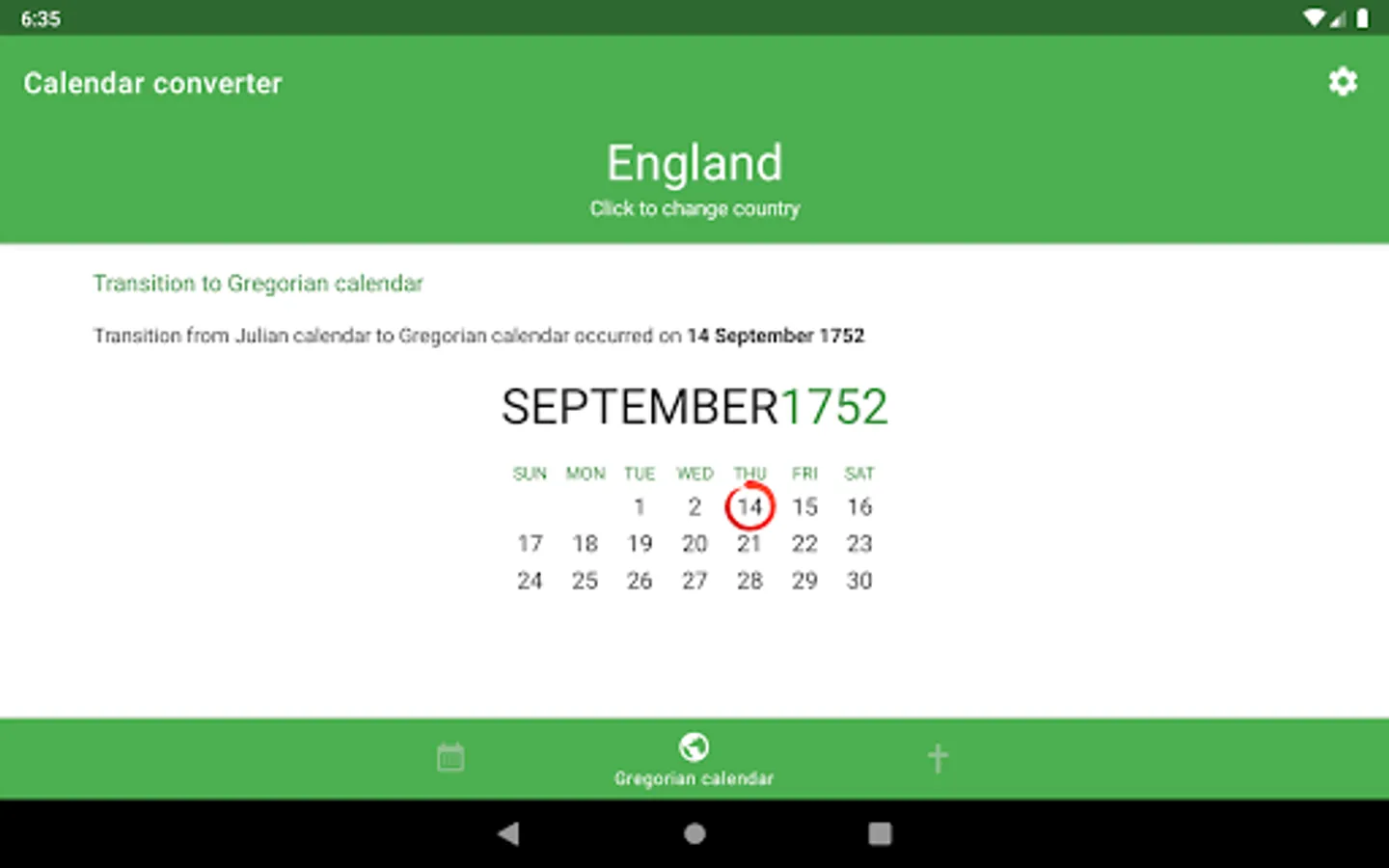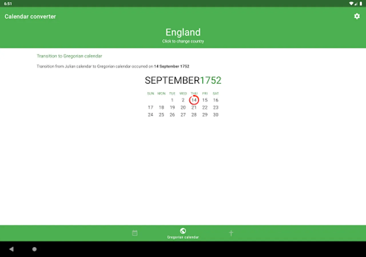 Calendar converter also gives you the date of transition between Julian and Gregorian calendars for different countries.