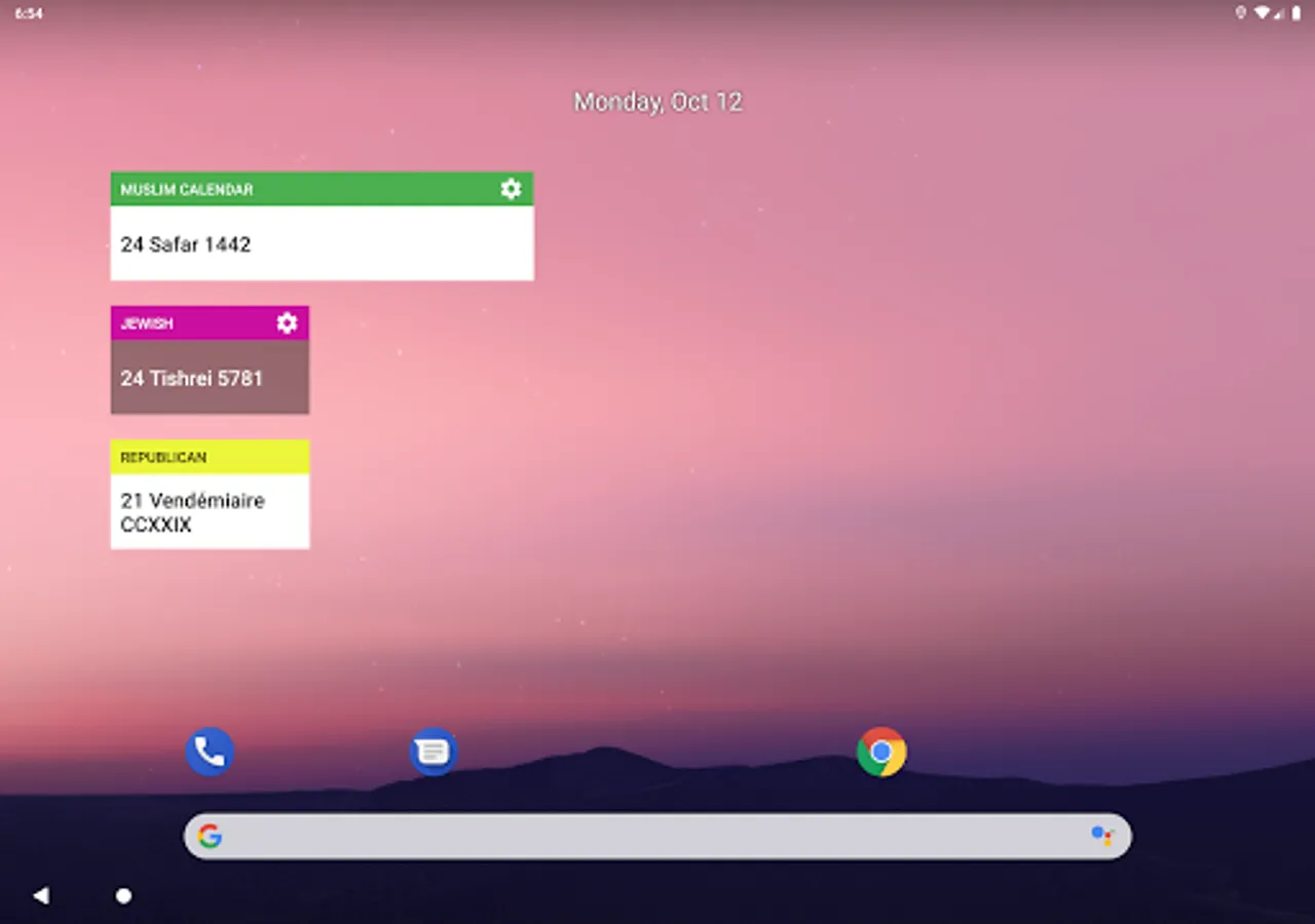 - A configurable widget to display the date of the day in the calendar of your choice.