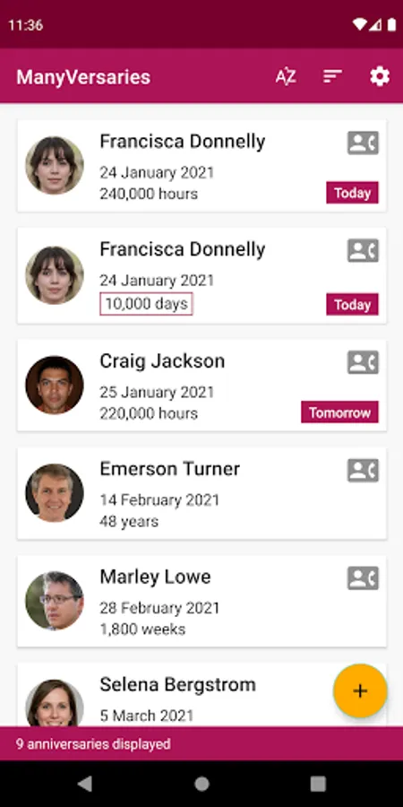 ManyVersaries does not only display your contacts birthdays but it also calculates their age in seconds, minutes, hours, days, weeks and months ! Surprise your friends by wishing them anniversaries they don't expect !