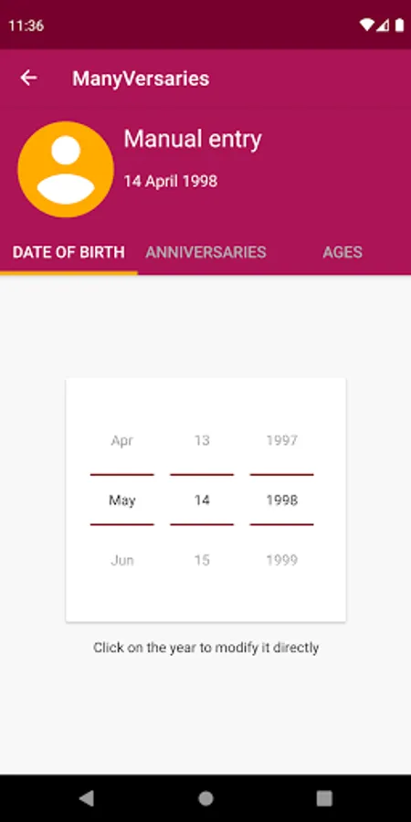 You can also enter a date of birth to calculate the ages and anniversaries of a person who is not in your contacts list.