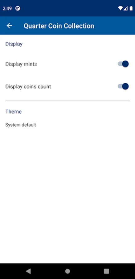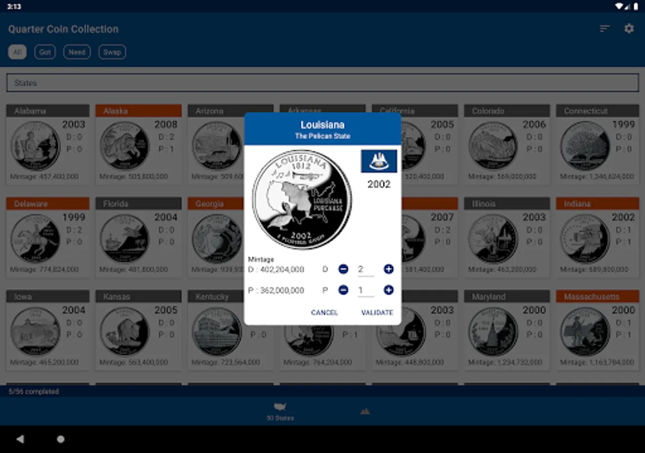 It is possible to enter the number of coins or simply identify them as owned. It is also possible to differentiate between mints, in this case the coins are entered by mint.