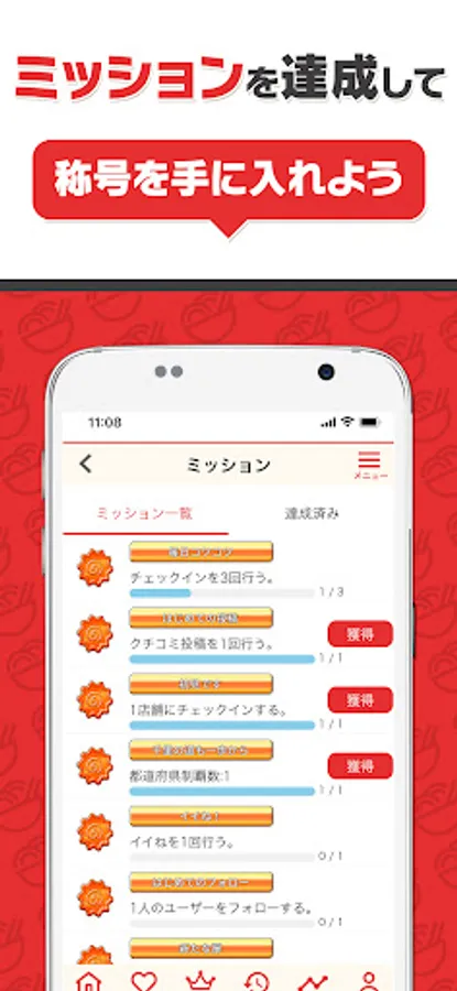 If you register as a free member, you can not only post rankings and word-of-mouth communication, but also complete missions related to ramen and acquire titles that can be used in the app.