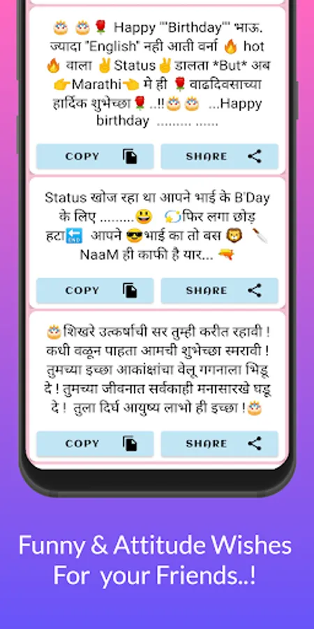 Nowadays everybody uses the Wishing app every day to wish his dear ones some beautiful words. our app will help you to find Good Morning or Good Night Wishes in Marathi. Birthday Wishes in Marathi to wish your friends on their birthdays. So keep this Marathi Shubhechha App in your mobile & enjoy it.