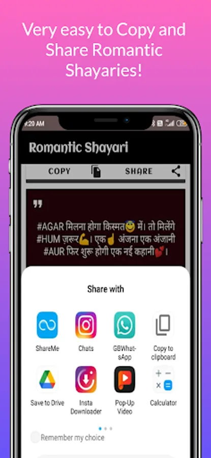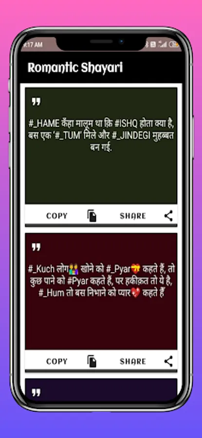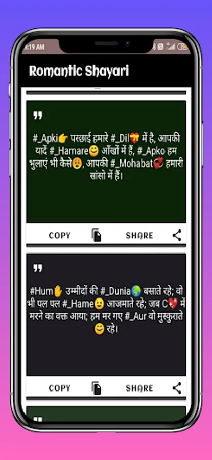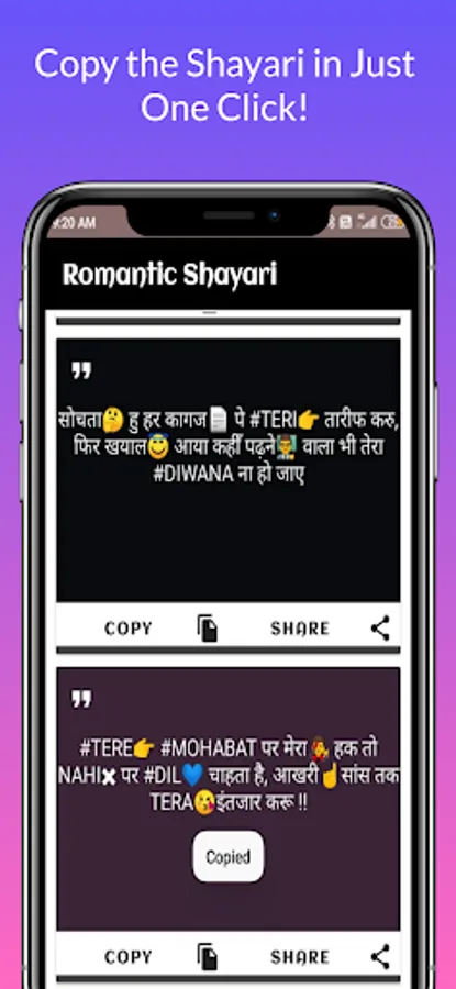 This app is the right place for Specially Romantic Shayari on every Best in class categories like Romance ,Miss you Shayari, Pyar Shayari, Mohabbat Shayari, Propose Shayari etc.