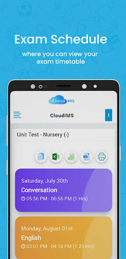 It can be used to manage the academics related functions of the school. The parents can track their wards attendance, exam results, download notes shared by the teachers etc. Teachers can use this app to manage their CloudIMS account