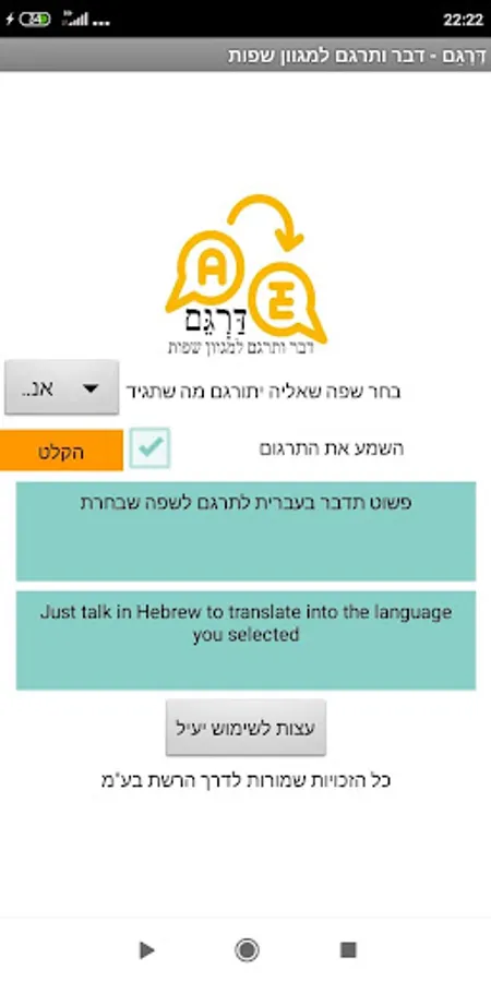 The Dergam app offers fast translation of Hebrew from a variety of languages. Just speak Hebrew and your smartphone will translate the translated text in the language of your choice. Text or speech can be translated from your smartphone.