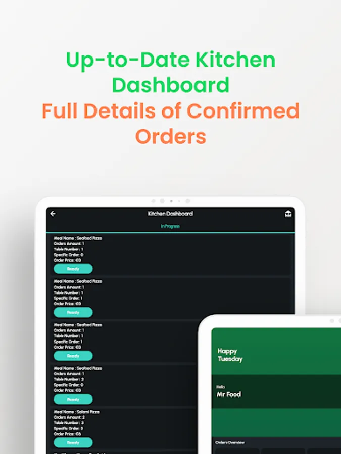 Bid farewell to the complexities of traditional order-taking. Our app offers a user-friendly layout for both the kitchen and cashier, eliminating the need for cumbersome paper systems. Seamlessly receive orders, track their progress, and manage them efficiently. With a streamlined process, one person is all you need to deliver delectable dishes to tables, freeing up your staff's time to focus on creating memorable dining experiences.