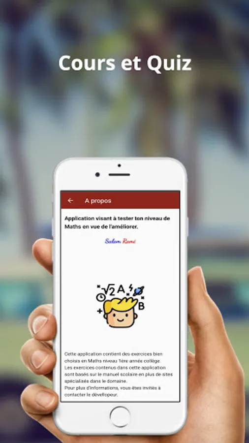 Are you a 1st year college student (Moroccan system) or 5th year (French system) and you want to improve your math skills to get more points during exams? Do you want to have cool math games and quizzes for your college kids? You are in the right place. Math Quiz 1AC is a free math quiz game designed for college students! It offers math lesson summaries in addition to challenging quizzes for each lesson. Select a category of your choice, start playing and level up!