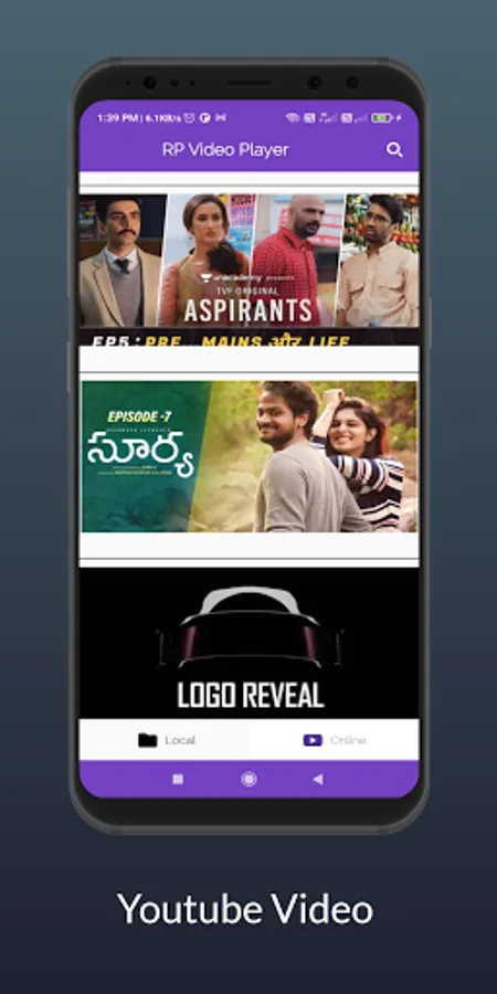 (4) last step local video seen and second online, online means youtube video seen in this direct app no any app open require