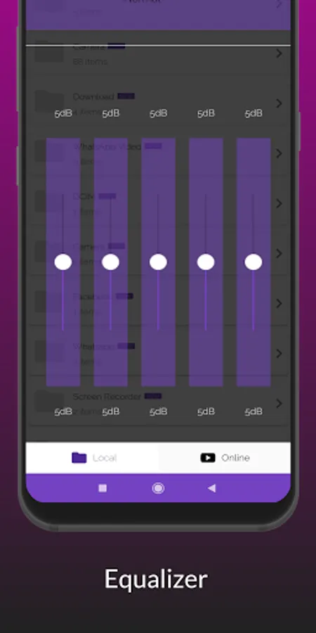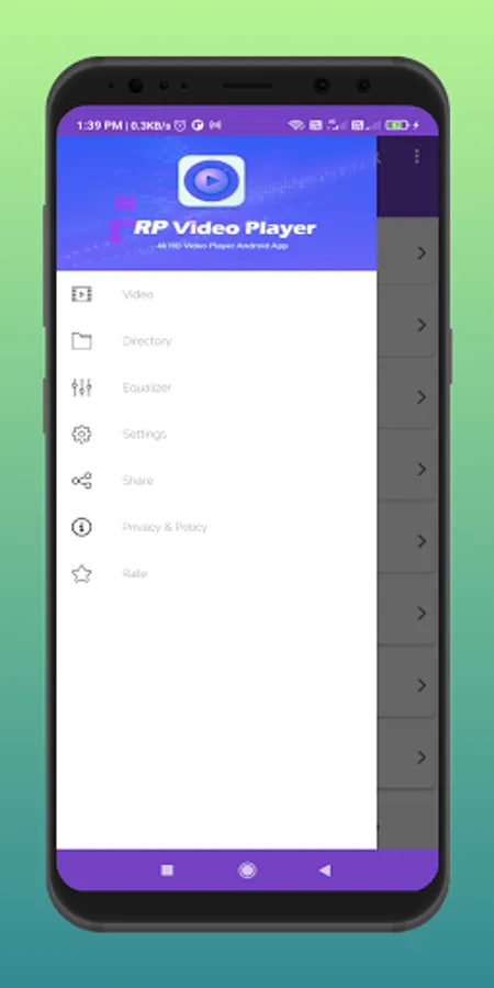 (3) Swipe left and see video select, directory, equalizer, setting, privacy policy, and app rate