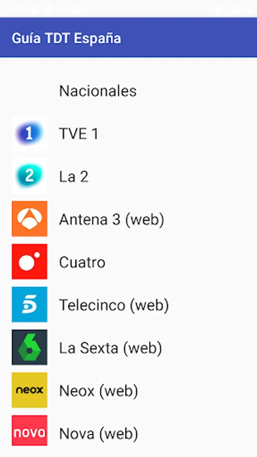 This complete list of channels includes, among others: antenna 3, the sixth tv, intereconomia, tv3, tve, canal 24 hours, telecinco, cuatro, atresseries hd, neox, nova, paramount channel, mega, thirteen, esport, 8 tv, andorra tv, la 7 murcia, 8 cádiz, rtvce, costa del sol tv, canal 25 barbastro, tv galicia, tv canarias, etb sat, telebilbao, rtpa asturias, san roque tv, televalencia, teleElx, levante tv, tv4 la vall, tef tv, htv huelva, onda algeciras, melilla tv, ibiza-formentera, flamenco, canal sur andalucía, ondaluz, la otra, betevé, navarra tv, imas, tv information, lebrija tv. All channels will always be those of free open broadcast. (Note: this list may vary over time).