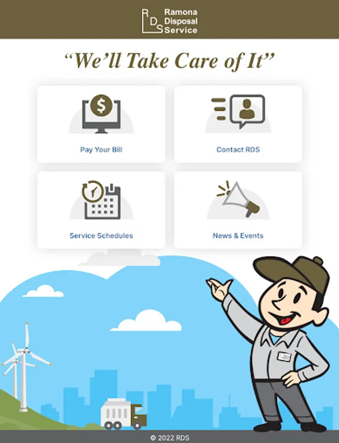 - Contact RDS directly through the app by phone or text. You may start or stop service, order carts and kitchen caddies, schedule bulky item pick-ups, and much more!