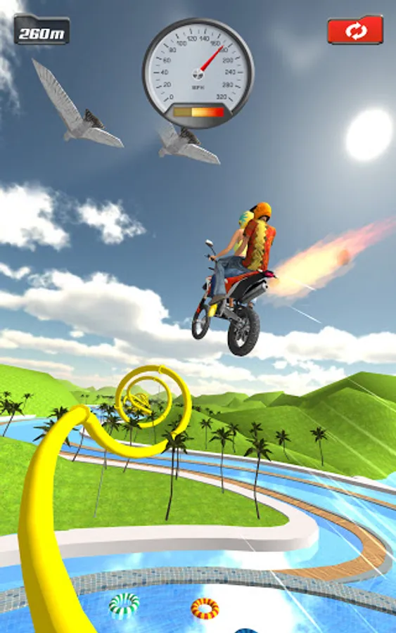 Perform the most unimaginable stunts on motorcycles, bicycles, even skis! There’s no backbone to be broken here! And we know a guy who knows a guy, whose sister-in-law bent some laws of physics for us. That’s right, you can get really crazy with our game. So buckle up, or not... It doesn’t matter. The only thing that matters is pure fun and madness!! YEE-HAW!