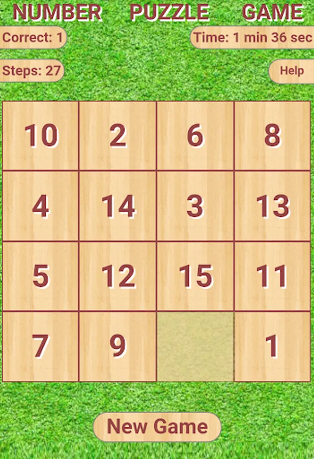 Number Puzzle Game is a simple board game where we arrange numbers from 1 to 15 in ascending order in order to complete the game. The board consists of 4 by 4 boxes for 16 blocks. 15 blocks consists of numbers from 1 to 15 and one block is empty to move the occupying block.