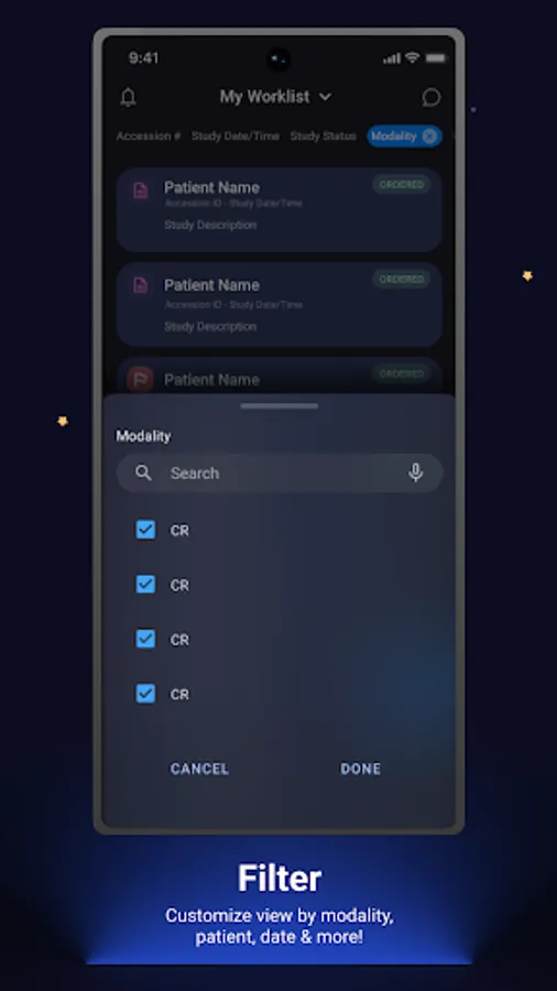 Easily create and manage worklists for various roles and organizations, view studies, apply column filters, and navigate from one worklist to another within a few clicks.