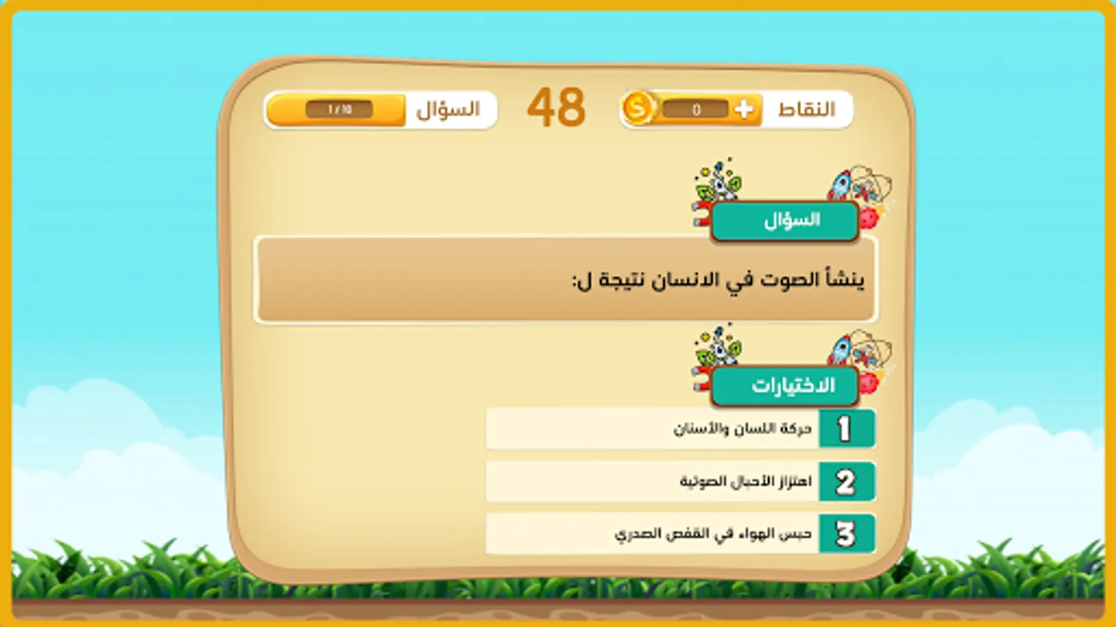 تم بحمد لله وتوفيقه من برمجة وتصميم هذه اللعبة من أجل تعزيز تقنية المعلومات في مجال التعليم بالإستقصاء المدعم بالتقويم التكويني ، حيث تشمل اللعبة على :