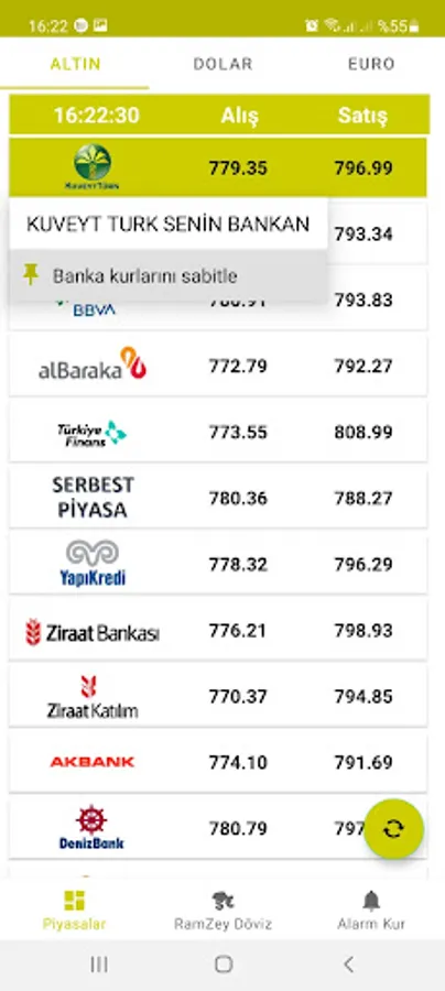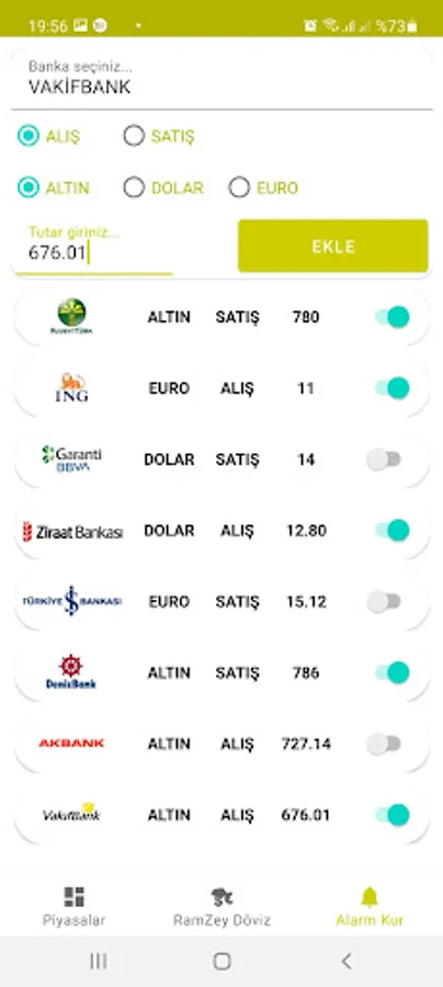 . İstediğiniz banka veya piyasadan herhangi birini takip edebilir alarm kurabilirsiniz.