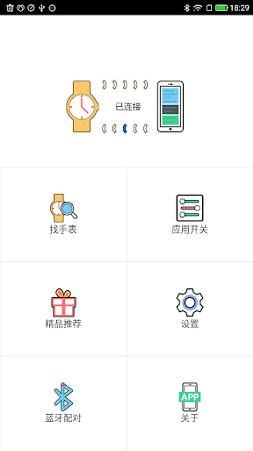 Put your mobile phone and smart watches connected together with the mobile phone application, when they are successfully connected, here to make some notification settings can be pushed to your smart watch. Installation and you can quickly and easily accept the phone's various notifications, so you no longer for the management of a variety of different notification information and trouble!