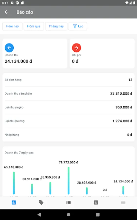 Manage the entire business of the store, view reports of sales, profits, expenses, order management, products, customers, liabilities, daily expenses.