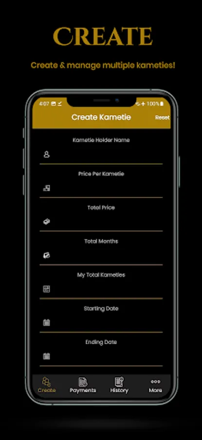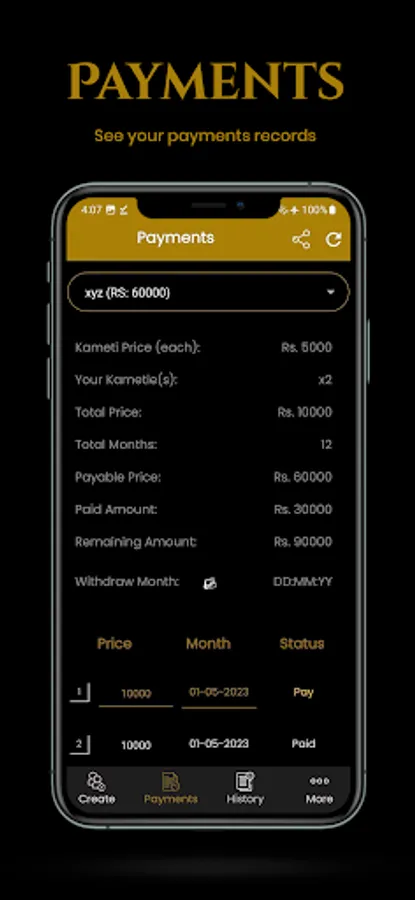 - Send paid kametie's report/status w.r.t each date to the person (kameti holder) Download this app into your smartphone and take your kameties record always with you 24/7 without having the papers.