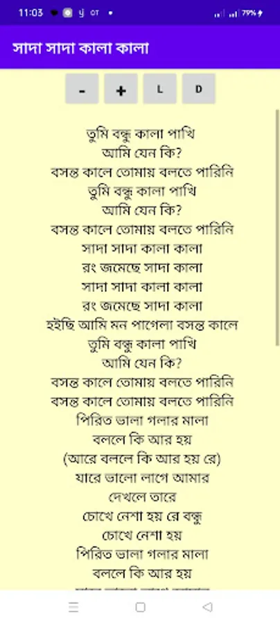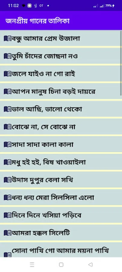 List of popular songs and lyrics of Bangladesh in the book. And new songs are updated constantly. In this book you can read songs very easily for which there are small capitalization and light and dark mood. Which is much better than all other books. And you can use the entire book for free.