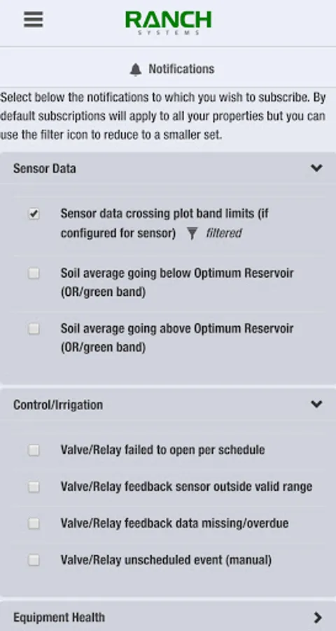 myRanch™ brings Ranch Systems' monitoring capability to your mobile devices. Utilizing the myRanch™ app makes it possible for Ranch Systems users to remotely monitor environmental conditions and make decisions related to their crop production sites or water management systems. myRanch™ delivers customized insight for data from sensors in the field such as weather stations, soil moisture, and water distribution.
