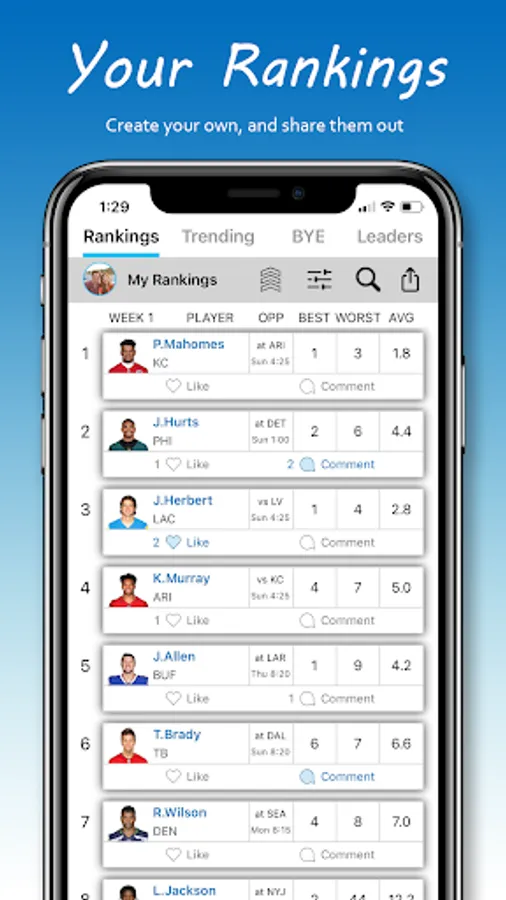 Easily follow anyone's rankings and verify their accuracy for every pick, from every week.