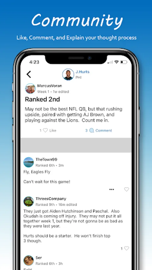 RancUp is an app that has made the process of setting your own Fantasy Football Rankings as fast and easy as possible. With our ability to track accuracy, you can also see how you or anyone else finishes on the leaderboard, and who the true experts are. You can also explain the method to your genius for each ranking, along with comment on anyone else's.