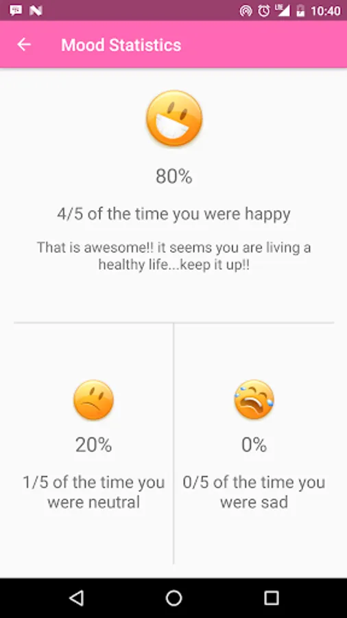 By installing this app you will also start tracking your mood and the percentage of how happy or sad you are in your life.