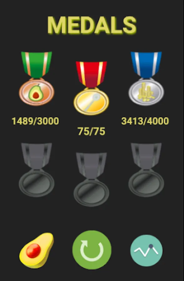 Complete medal challenges each round to earn bonus experience! Reaching certain experience milestones (as indicated in the stats page) will improve your Avocado Trophy, accessible through the Medals screen.